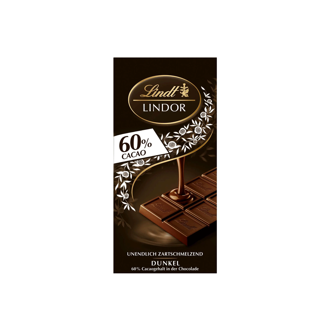 شکلات تلخ ۶۰ درصد لینت لیندور ۱۰۰ گرمی | Lindt Lindor Dark 60% Cocoa Tablet 100g